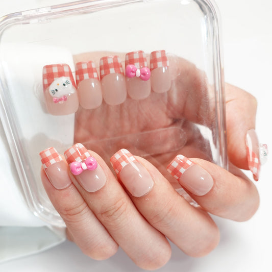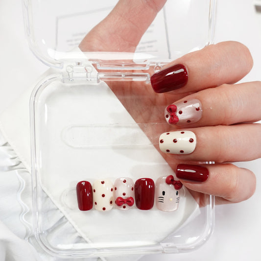 A17 Super Short Cartoon Red Press on Nails +tool kit