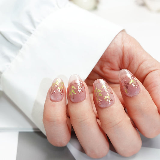 A16 Elegant Flower Design Short Oval Handmade Press on Nails +tool kit