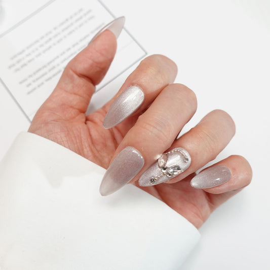 A123 Long Almond Cat Eye Press on Nails +tool kit