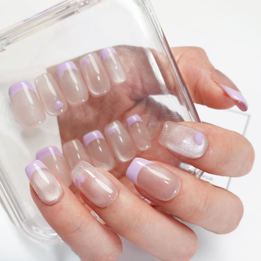 A109 French Style Cat Eye Short Coffin Press on Nails for Women