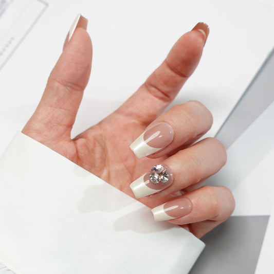 A121 Elegant Short Coffin French Design Press On Nails +tool kit
