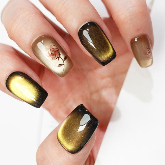 A15 High Class Short Square Flowers Cat Eye Press On Nails